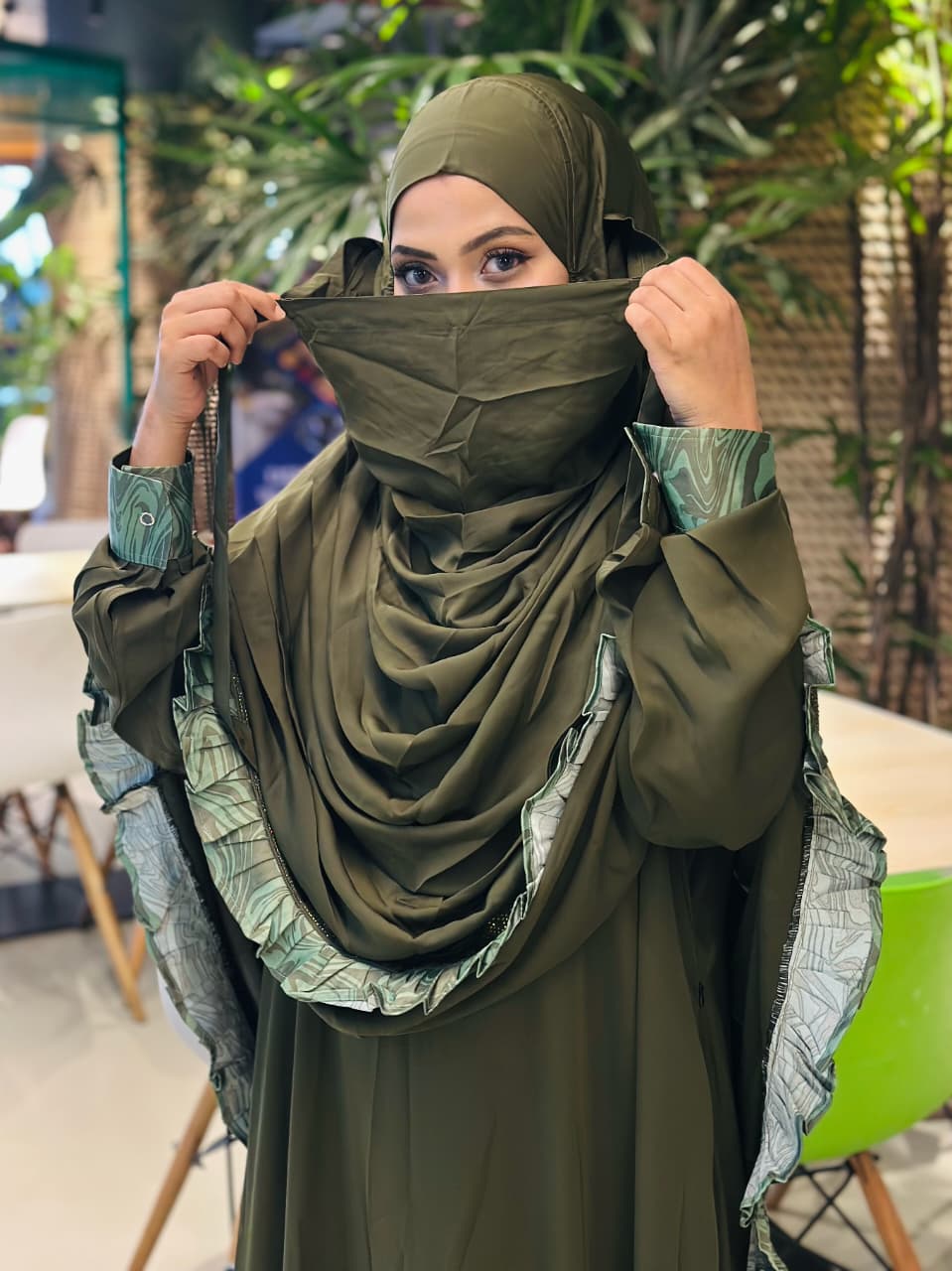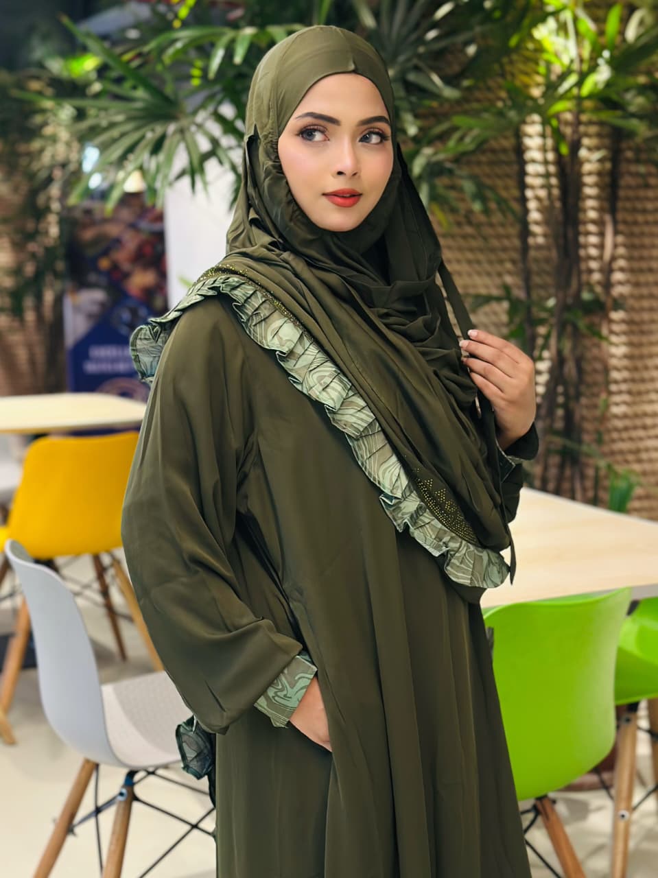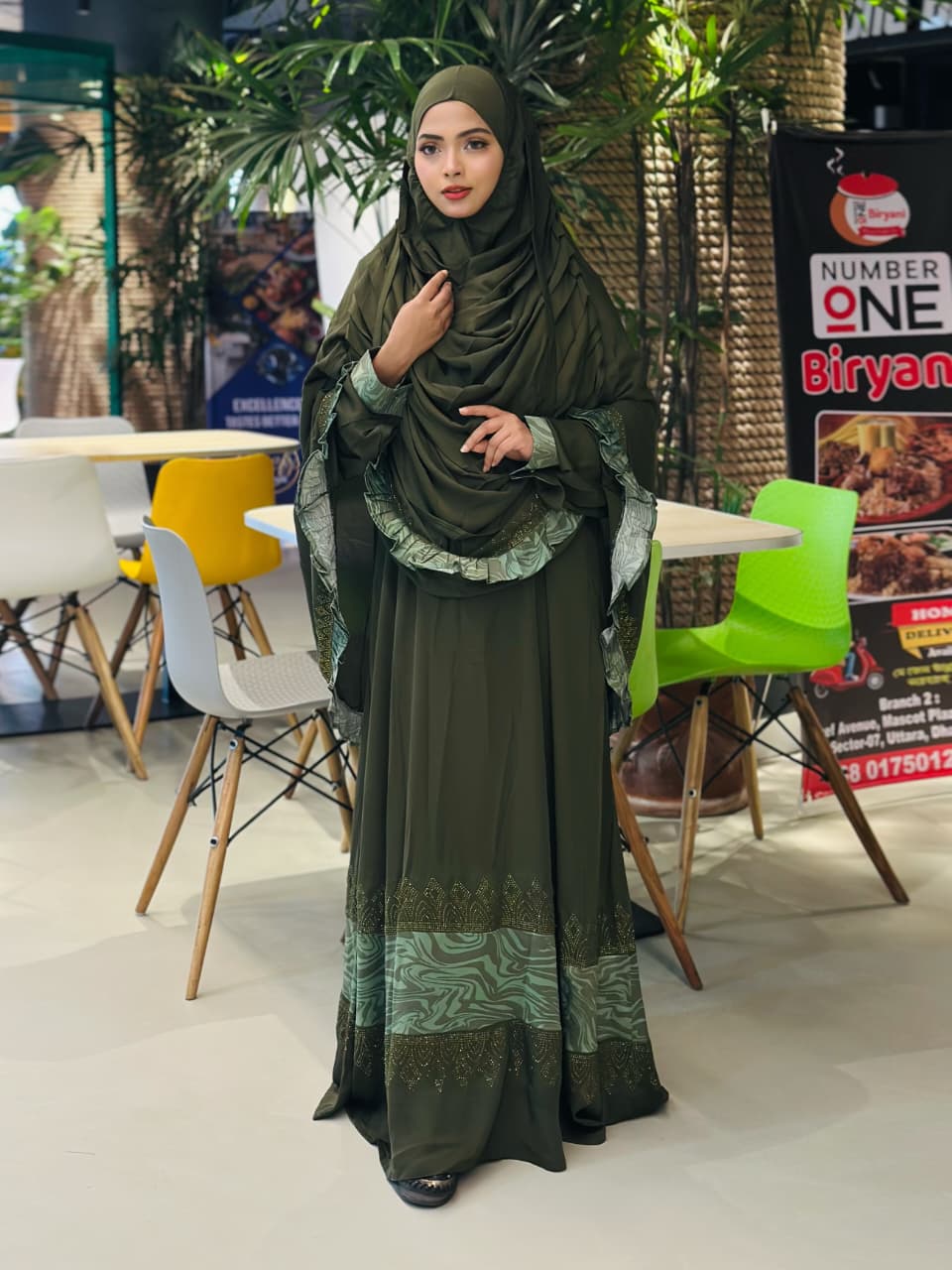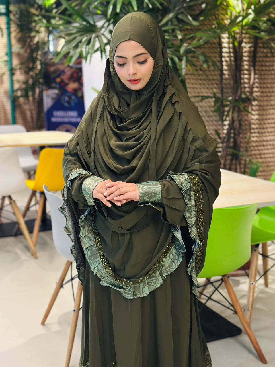 পার্টি কালেকশন বোরকা ও হিজাব কম্বো সেট 🌸 - অলিভ